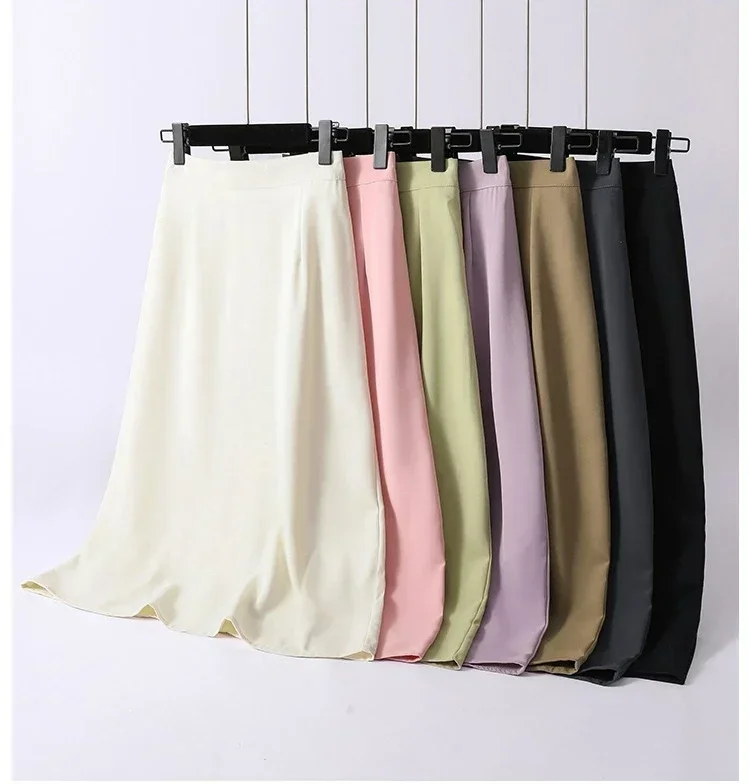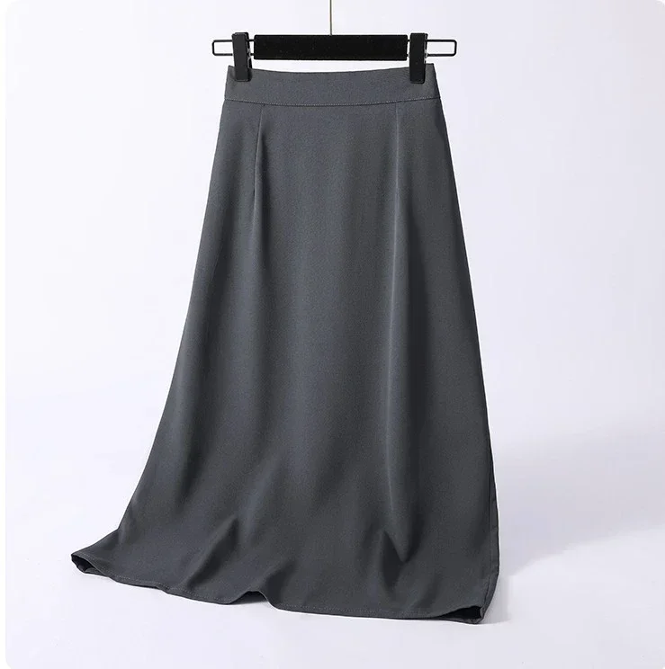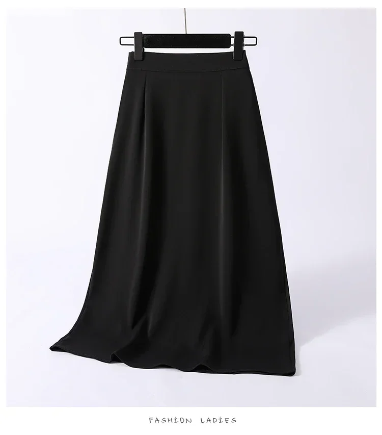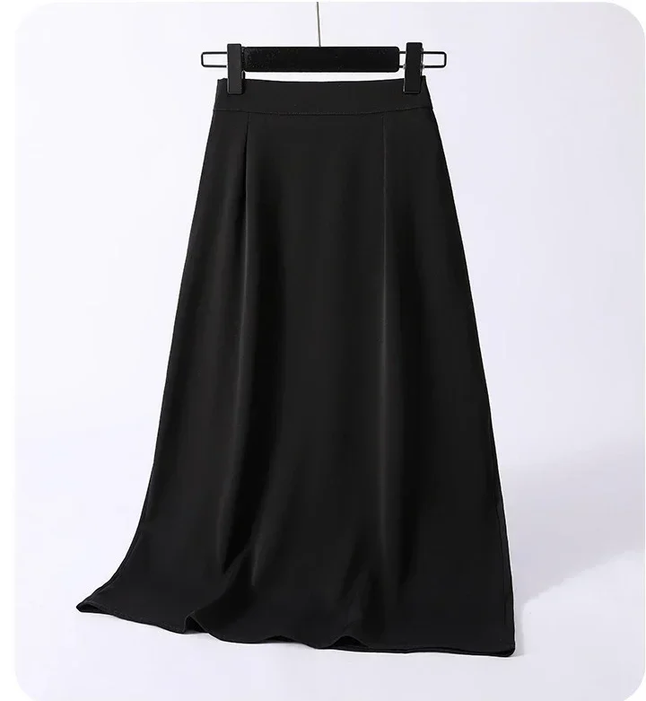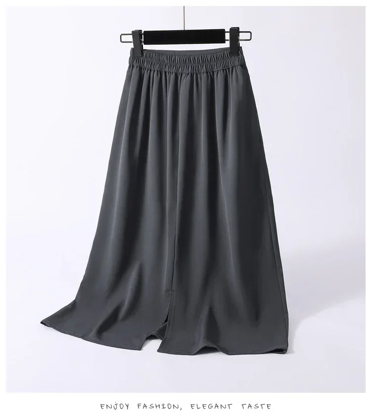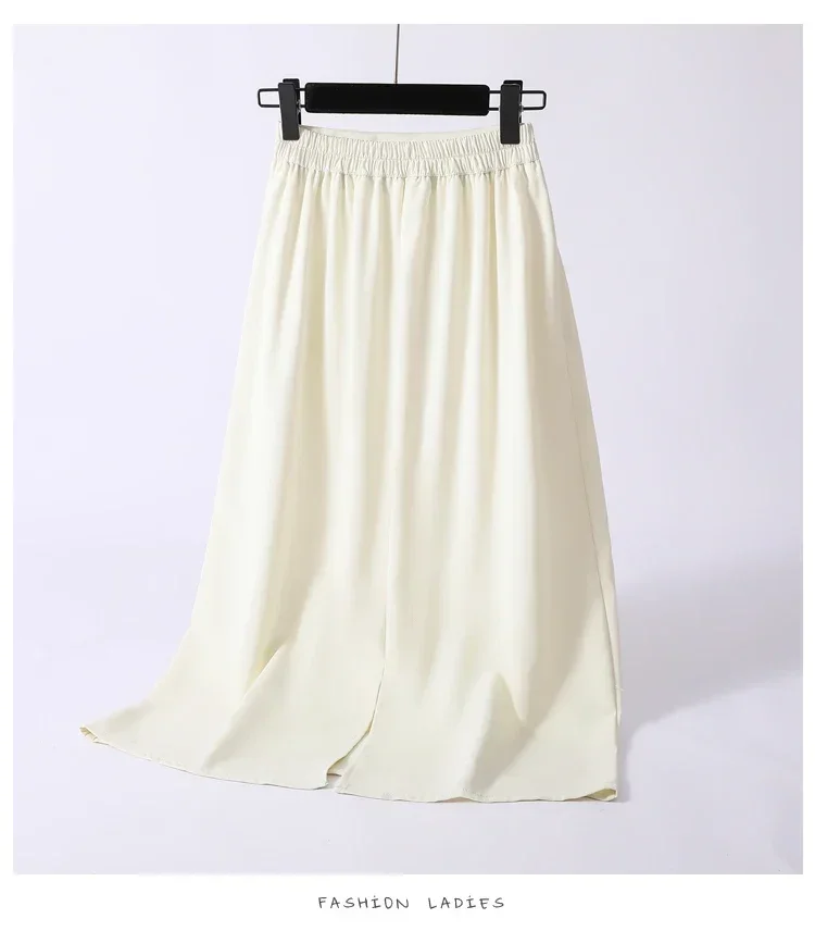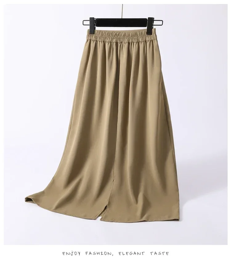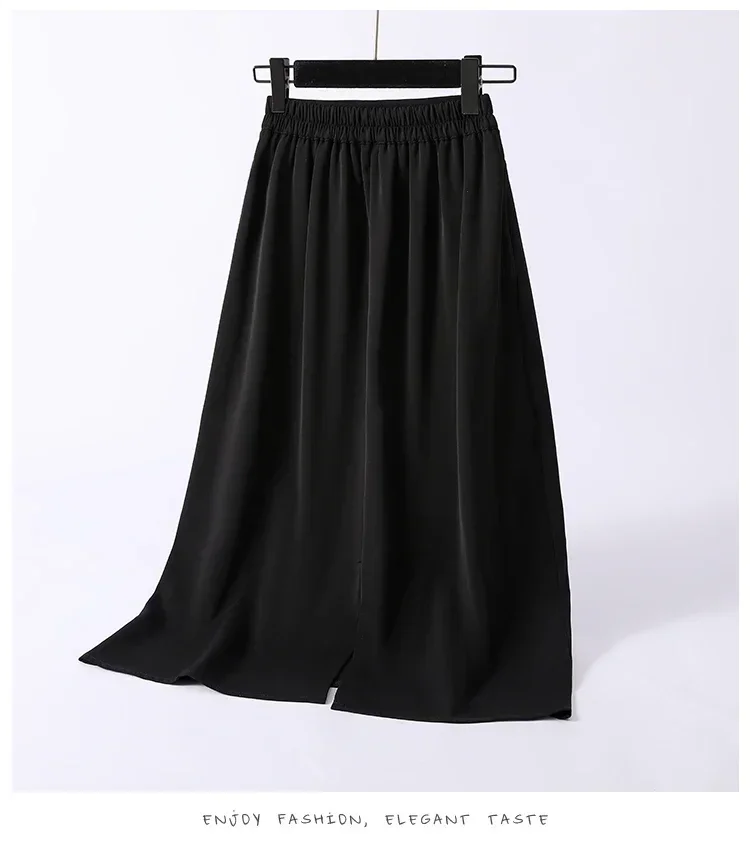 2025 Korean A-Line Big Size Skirt Simple Solid Color Elastic Waist Half-length Skirt Summer High Waisted Mid Length Long Skirt