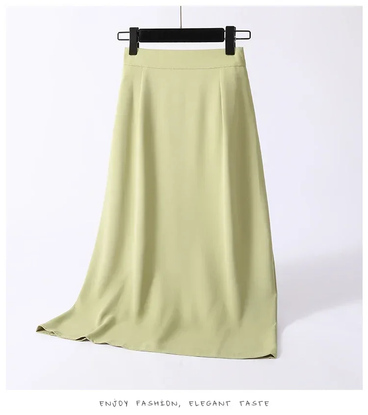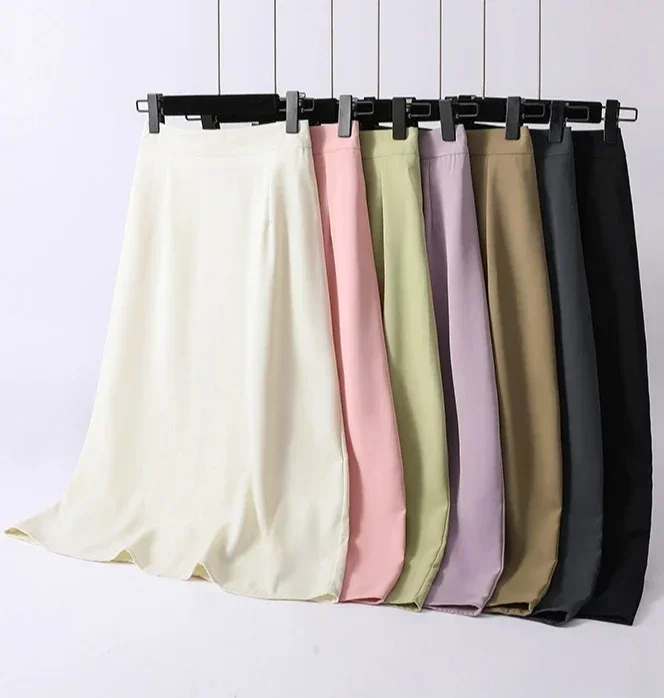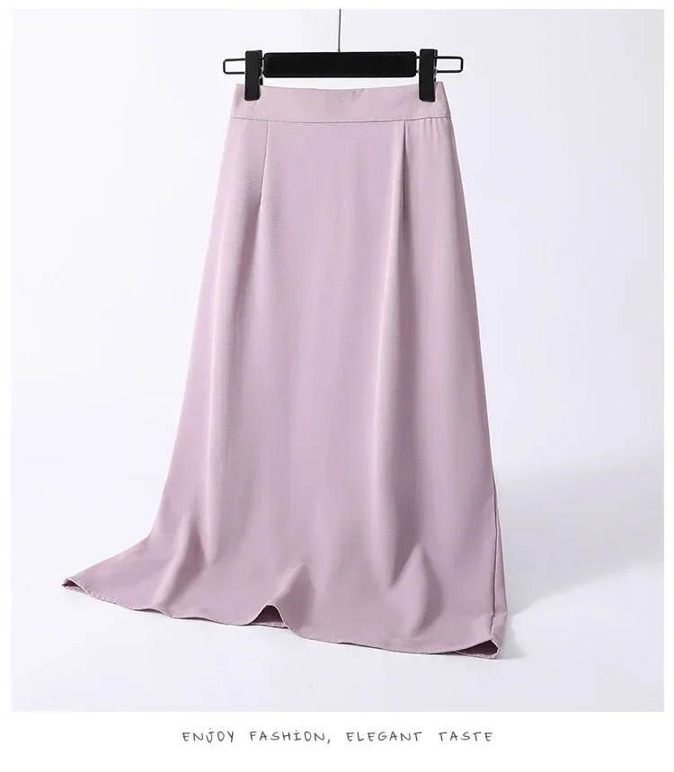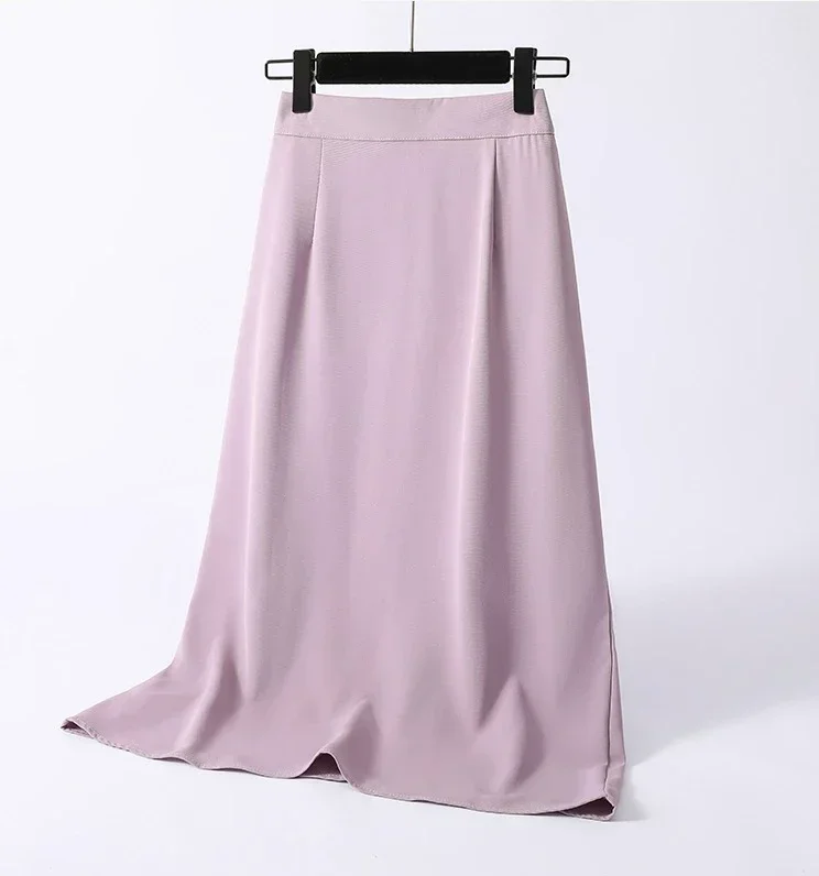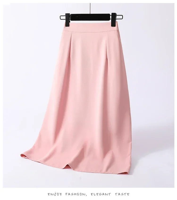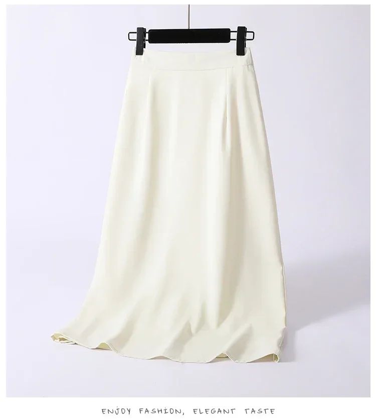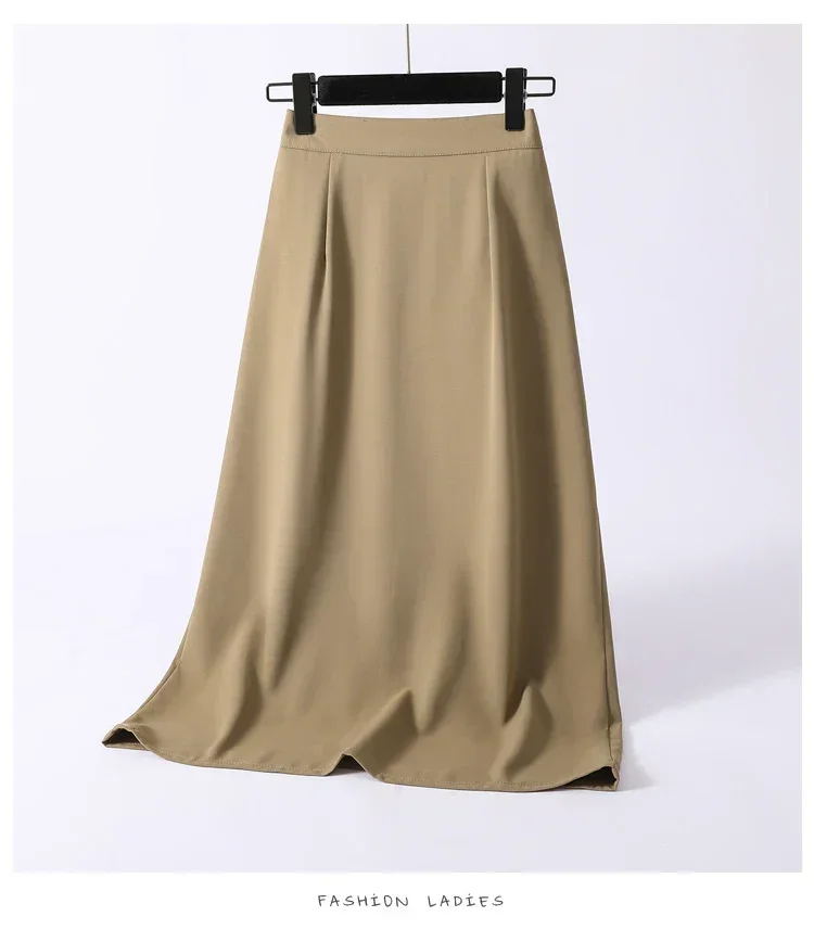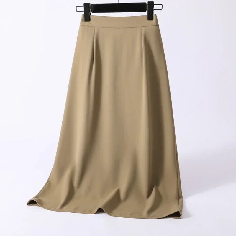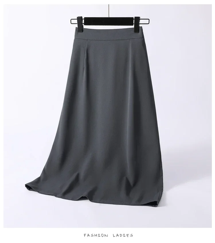2025 Korean A-Line Big Size Skirt Simple Solid Color Elastic Waist Half-length Skirt Summer High Waisted Mid Length Long Skirt