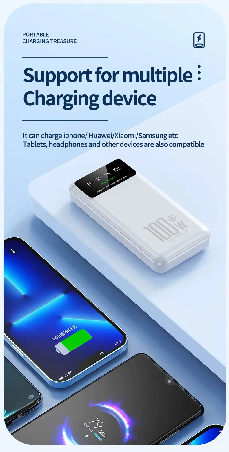 Xiaomi 50000mAh 100W Super Fast Charging Power Bank Portable Charger Battery Pack Powerbank for iPhone Huawei Samsung