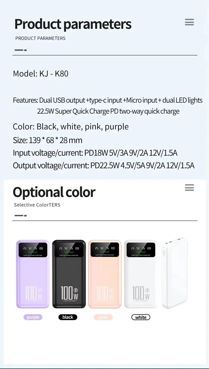 Capacity: Available in 10000mAh, 30000mAh, and 50000mAh options