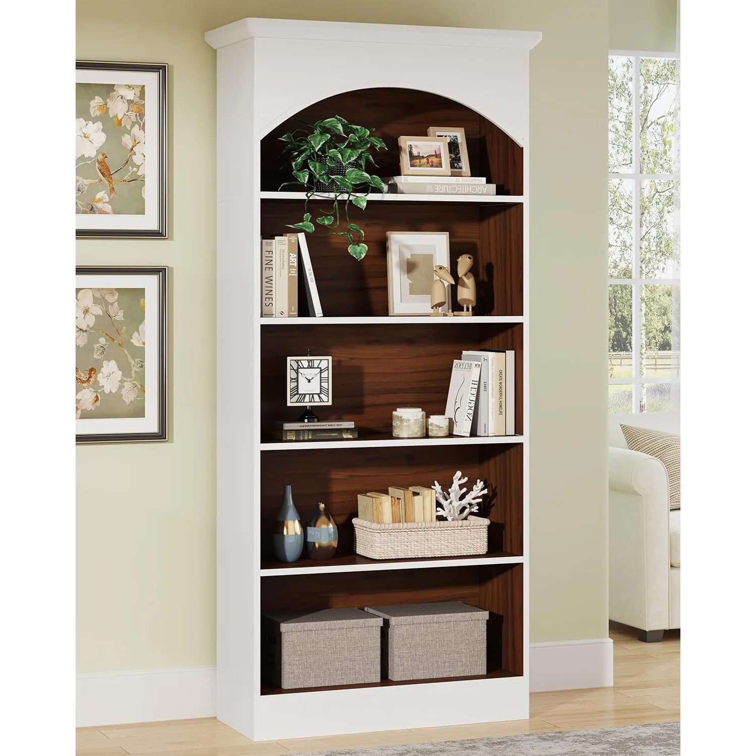 5 Open shelves provide large storage for displaying. Add a Natural Home for Your Books or Display, Libary Bookcase perfect for Studying, Working, Writing, or Storing.