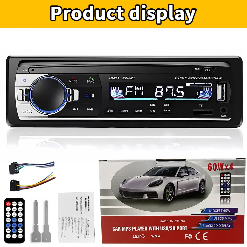 *AUX audio input, mobile phone, MP3/MP4/MP5/navigation and other audio can be played in the car through the machine;