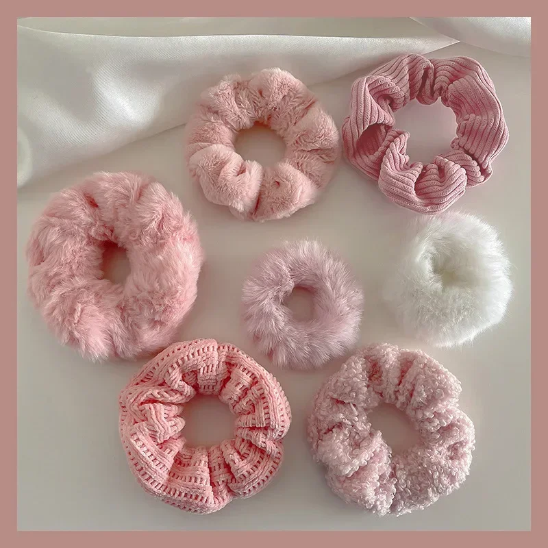 Winter Plush Pig Large Intestine Hair Ring Net Red New Versatile Plush Head Rope Leather Band Women’s Tie Hair Rope Leather Cover Headwear