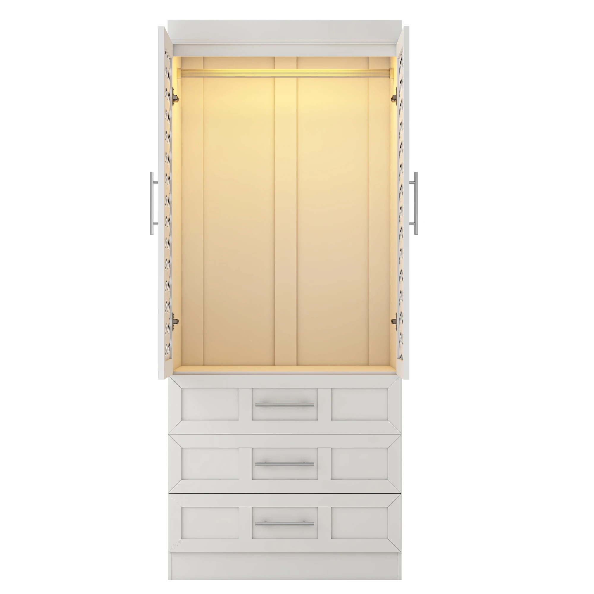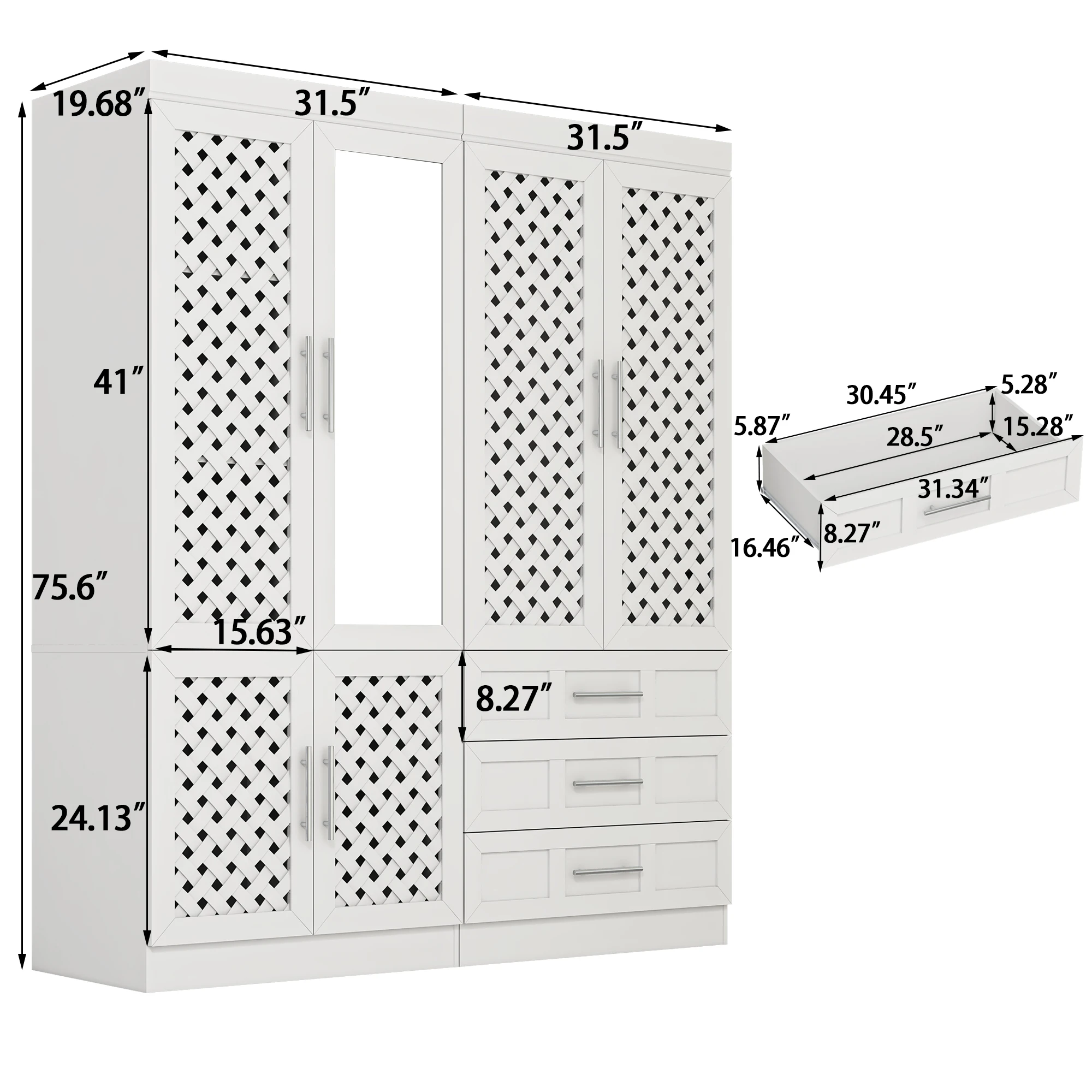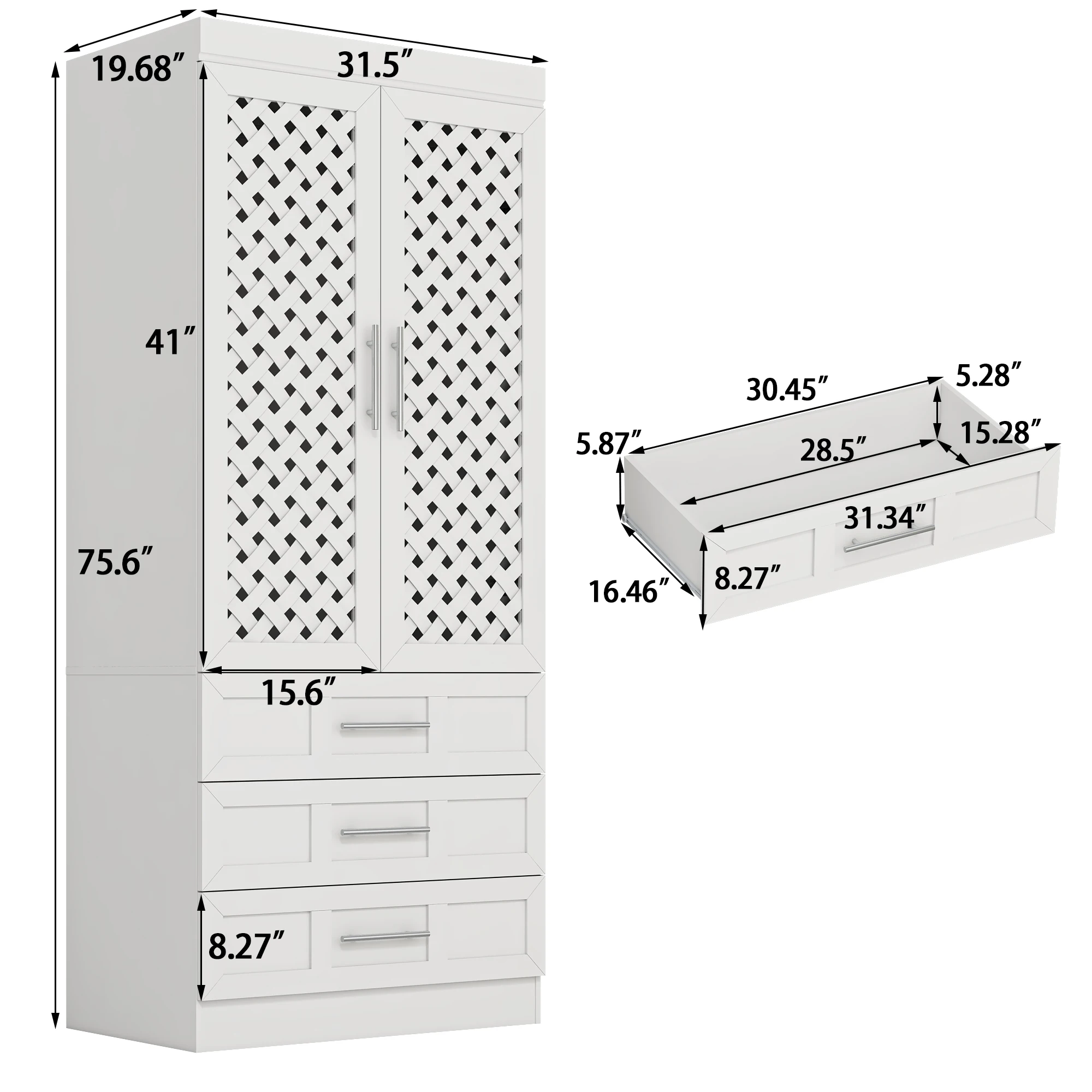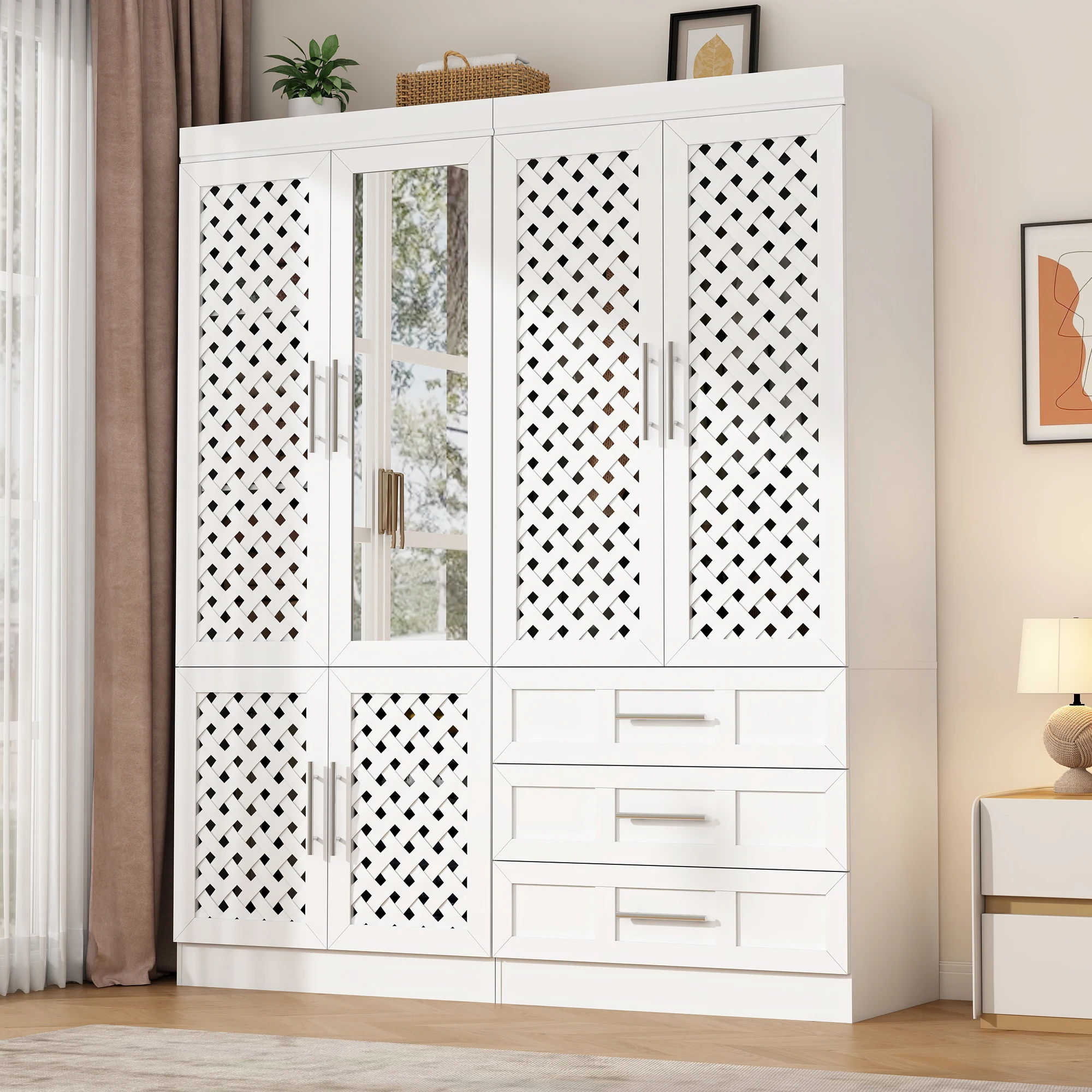 Modern Home Style: White bedroom armoires adopts fashionable modern style, rattan cabinet doors with both design and practicality, in line with home aesthetics, wardrobe closet with doors can be perfectly integrated with a variety of decorative styles, add home atmosphere, enhance the sense of aesthetics of the home.
