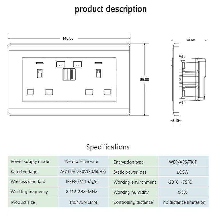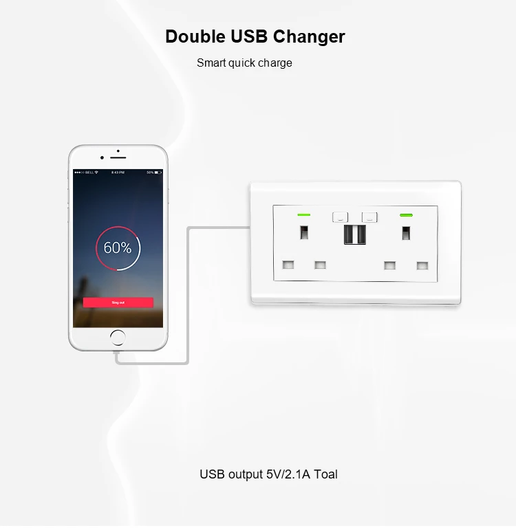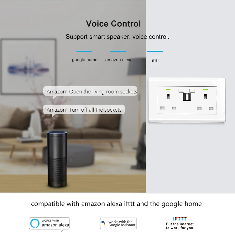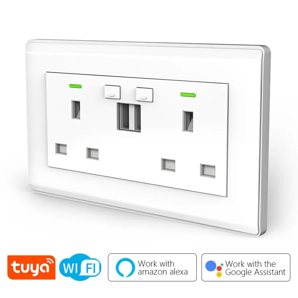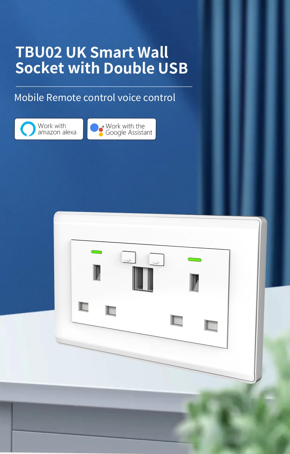 TBU02 UK Smart Wall Socket With Double USB Work with Google Home