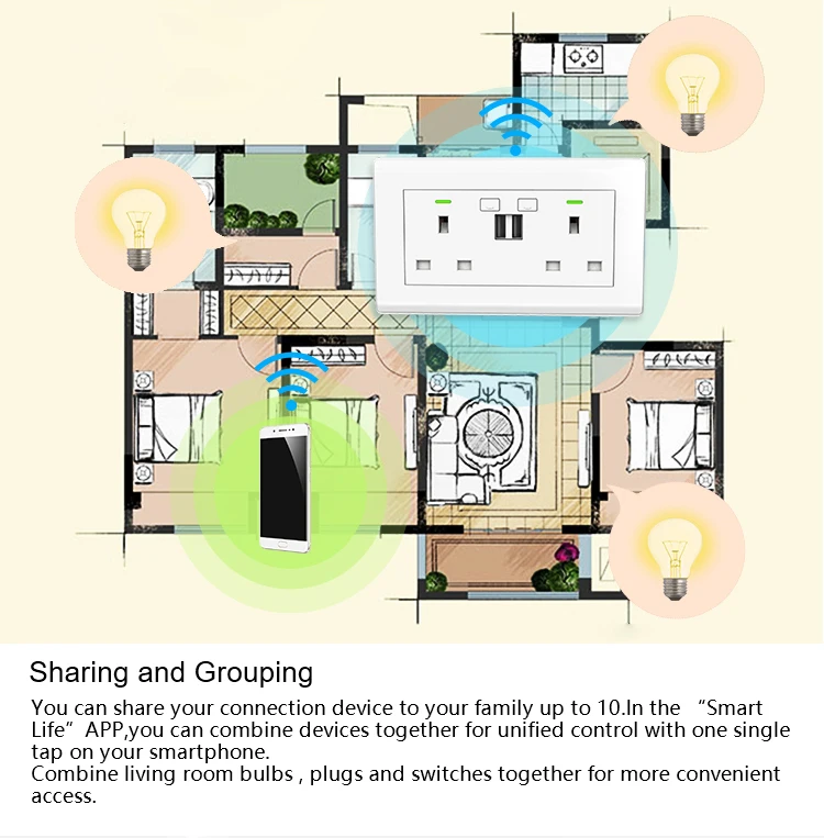 You can share your connection devices to your family up to 10.In the smart life app,you can combine device together for unified control with one single tap on your smartphone.