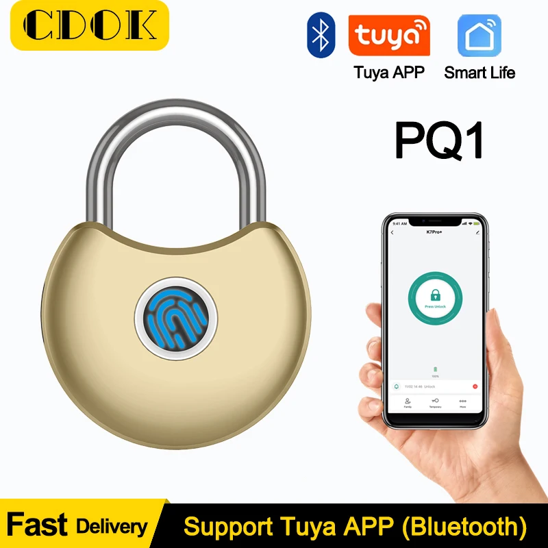 CDOK PQ1 Smart Fingerprint Padlock Waterproof Tuya BLE Remote Unlock USB Charging Unlock Anti-theft Cabinet Door Lock