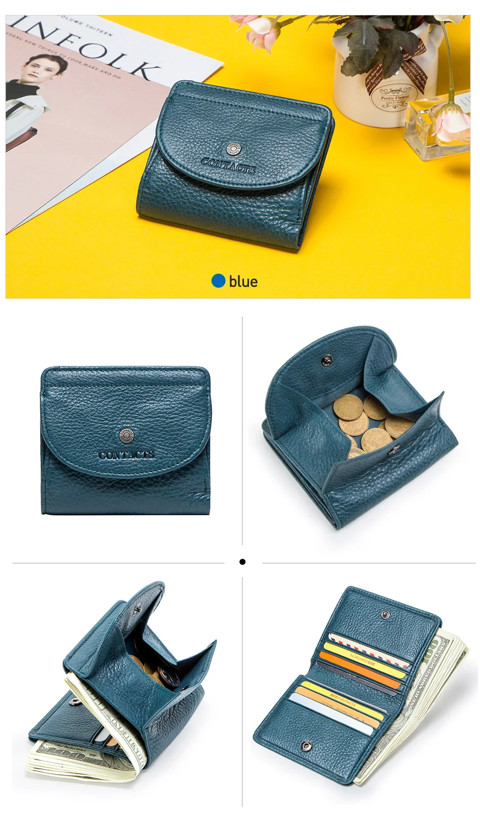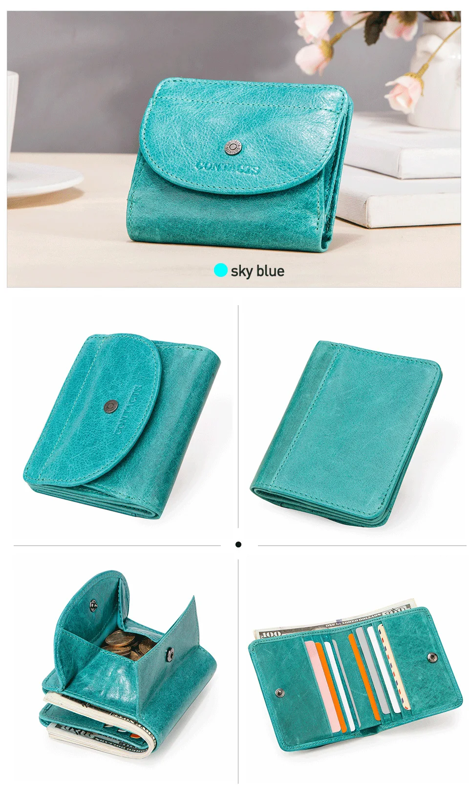 - Interior: Coin Pocket,Note Compartment,Card Holder