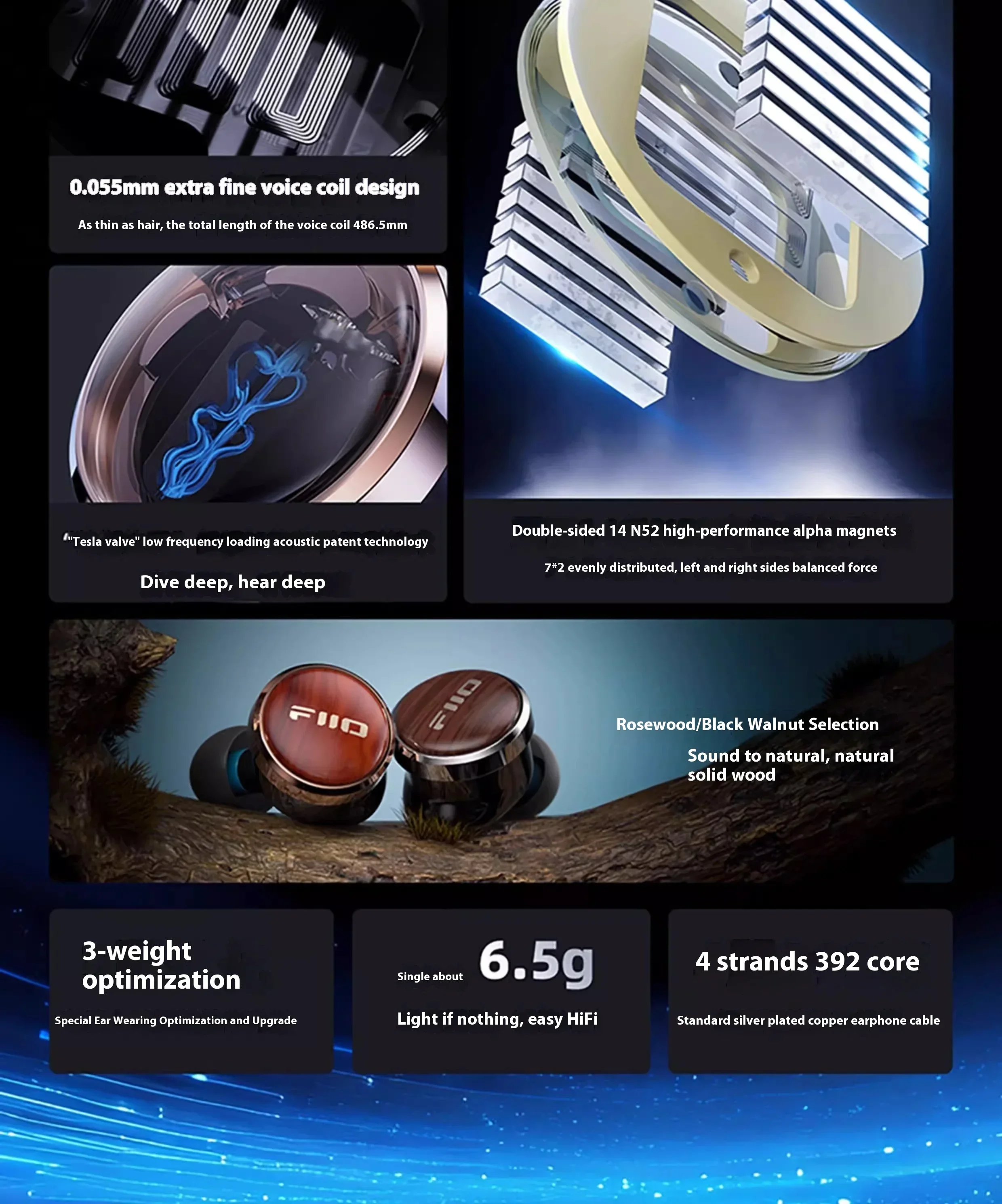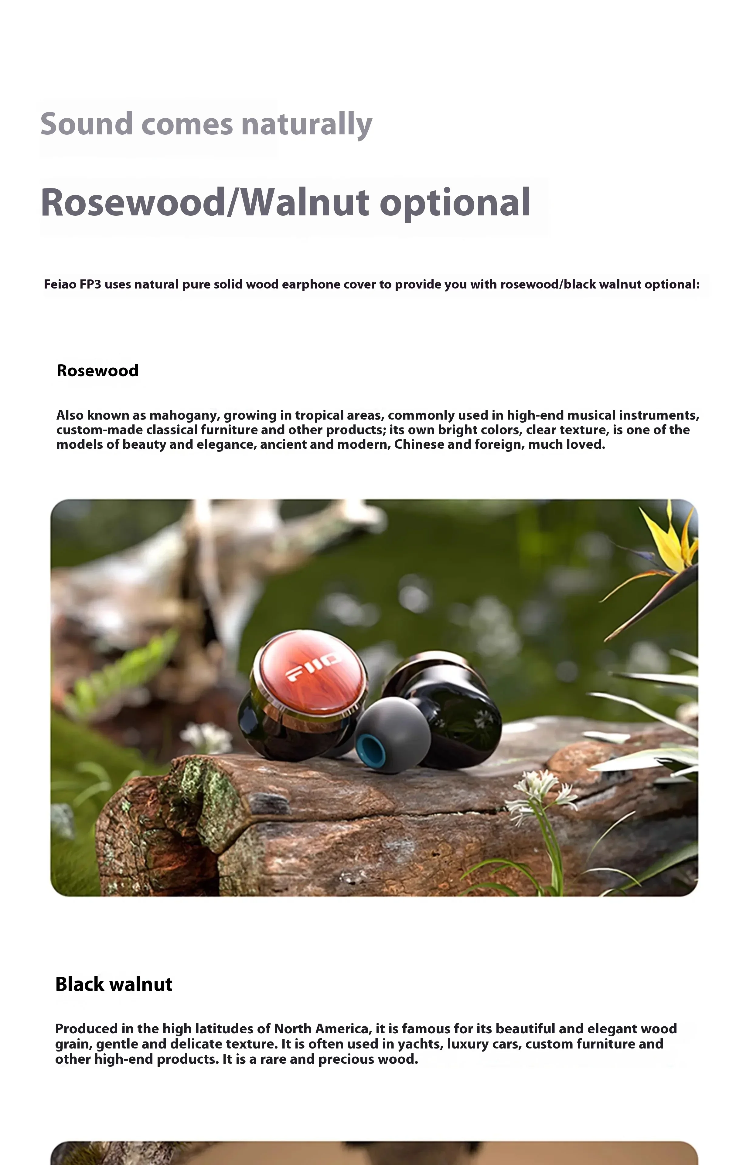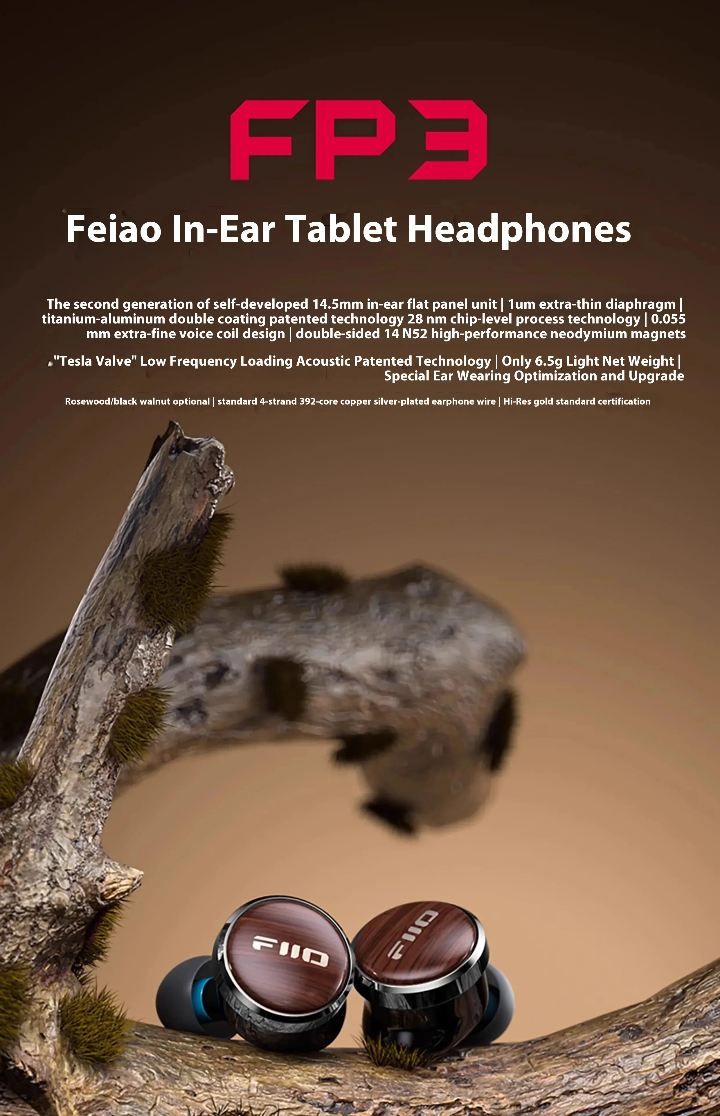 Fiio Fp3 Earphone Hifi Wired Walnut Earphones Lightweight Headset Pear Blossom Wood Earphones Customized Office Gaming Headphone