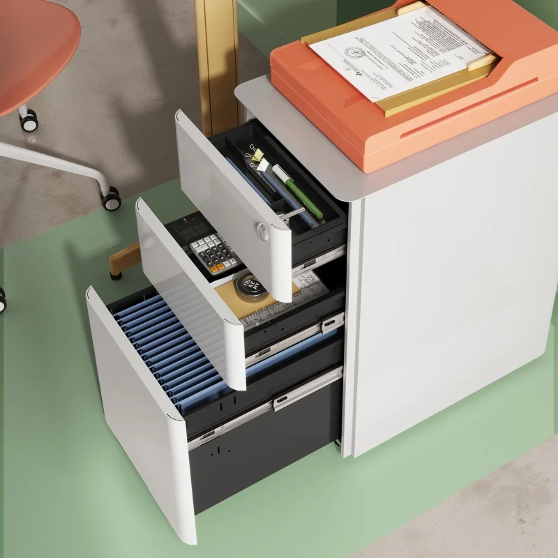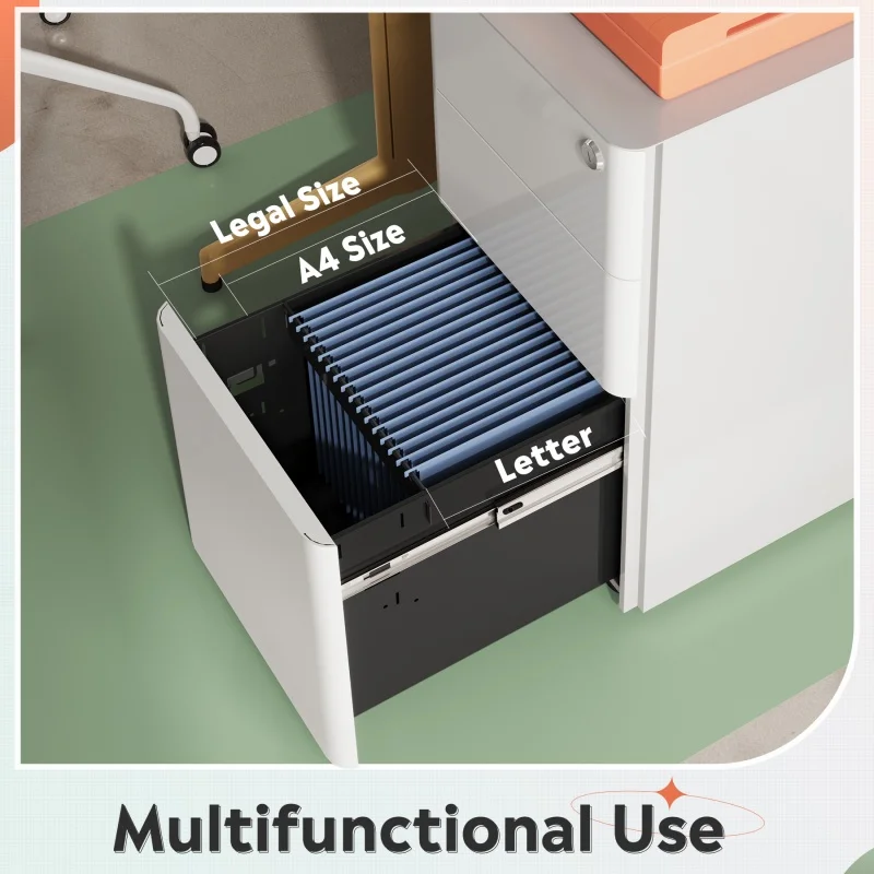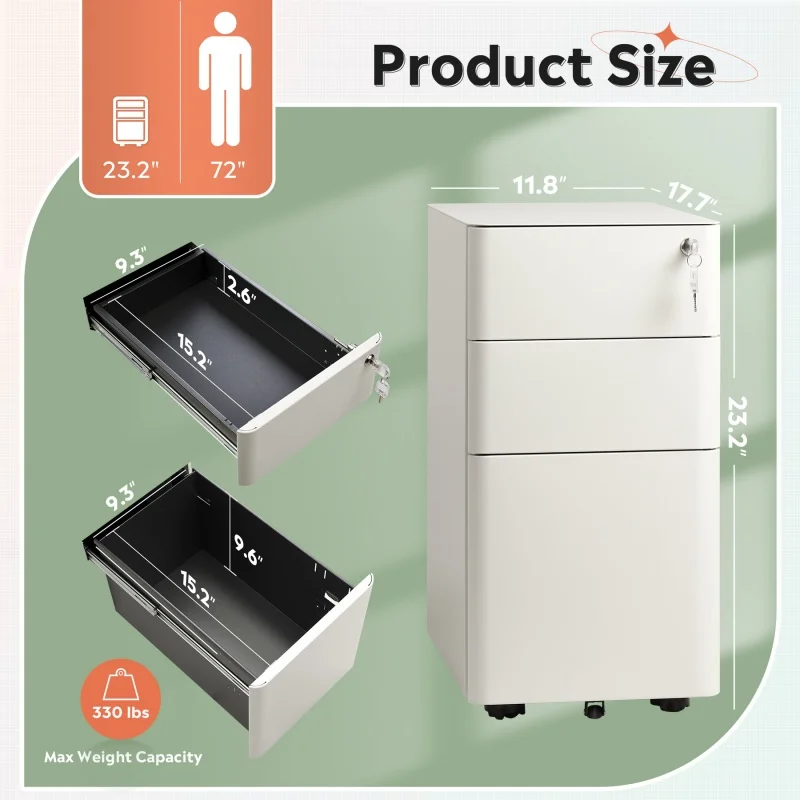GALAXHERO’s slim vertical cabinet solves your space woes – its compact 11.8″ width slides perfectly under desks while storing 330lbs of files! Customers love the sturdy steel construction and rounded-corner safety design. While most find the wheels roll smoothly (we’ve reinforced them for carpet use!), we’ve upgraded the locking mechanism based on feedback to ensure all three drawers stay secure. Perfect for home offices – be organized in minutes with our tool-free assembly!