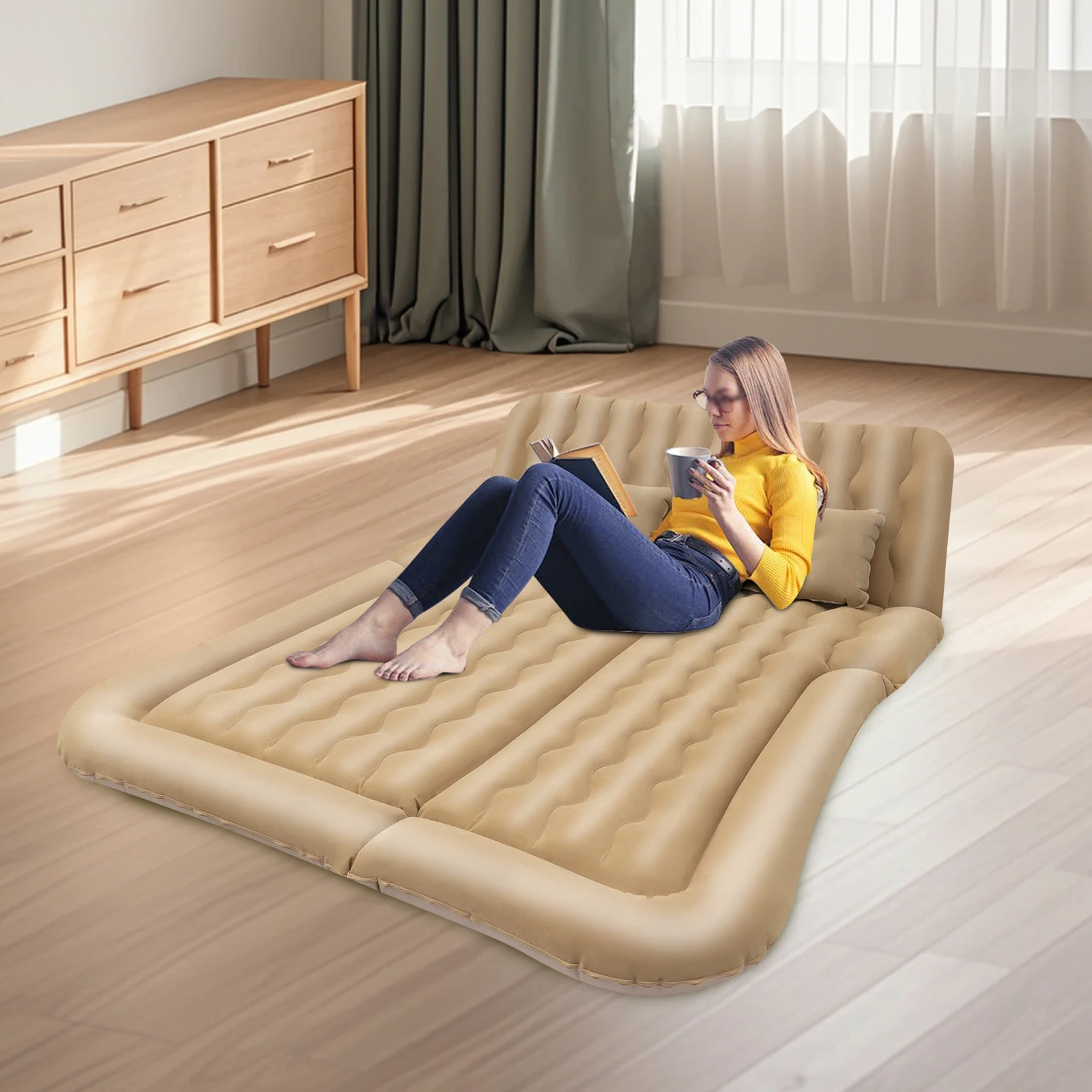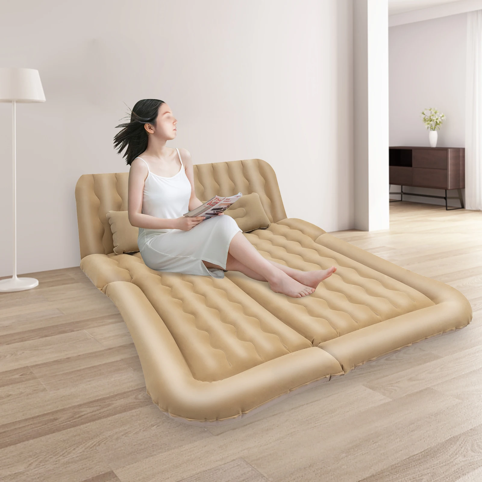 Are you tired of long drives? Then this inflatable mattress is the solution for you and will lead you to a new level of comfort on your journey. It supports quick inflation and deflation, making it easy to store and carry. It is ideal for home use, outdoor travel, or as a temporary guest room solution.