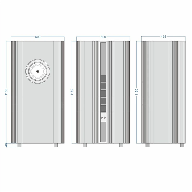 1. Unique arc-shaped cabinet design, using multi-layer bending, the advantage is that it can effectively suppress the standing wave in the cabinet, and the back of the cabinet is wide open.