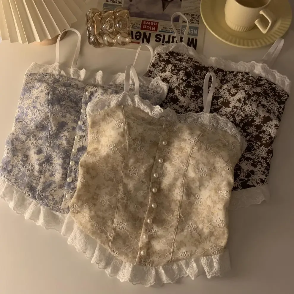 Plus Size Women’s Sexy Lace Flower Slimming Top Tank Vest Inner Wear Large Size Backless Strapless Top China Made
