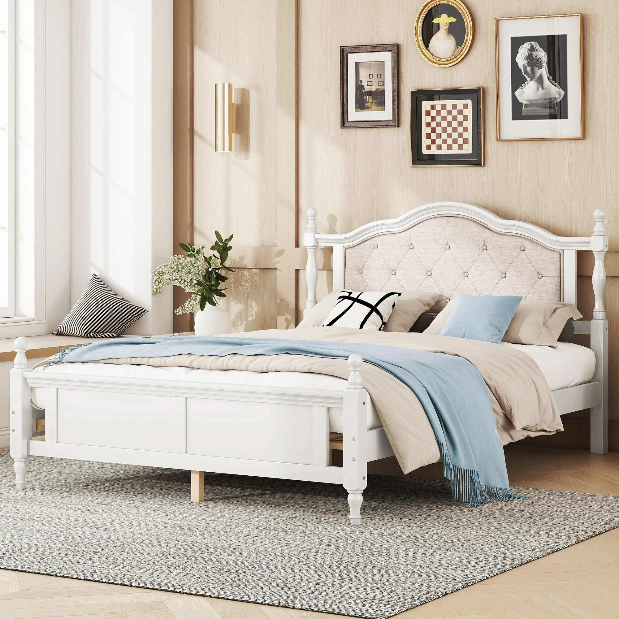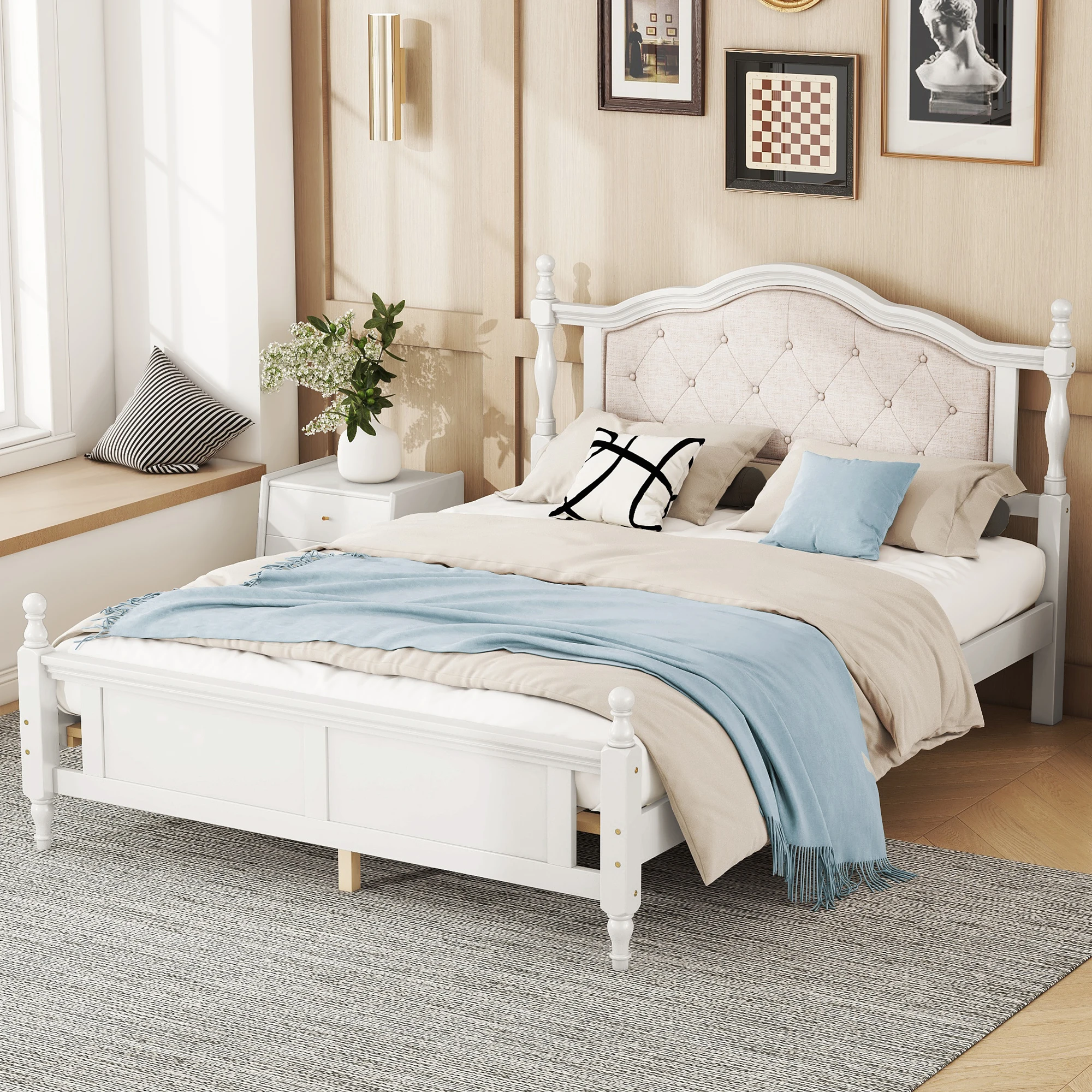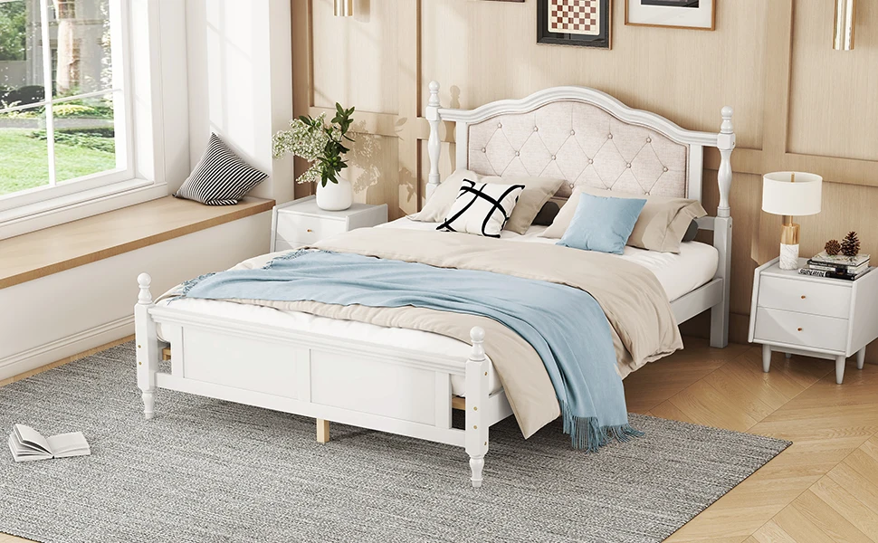 - [Flexibility Meets Style] This masterpiece enhances the ambiance of any home it graces. This queen-size bed exemplifies the art of efficient design of the upholstered headboard. It’s crafted to enhance the available space in any room, bringing out the best in various scenarios. This bed’s innovative and classical design effortlessly adapting to various settings.