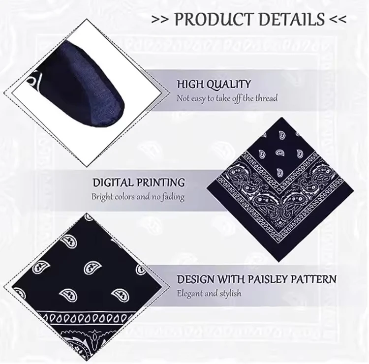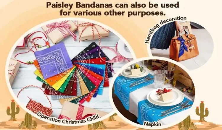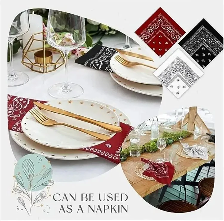 Use them as: doo rags, head bands, wrist wraps, head scarves, pocket accessories, dog rags, handkerchief, face masks, napkins and much more.
