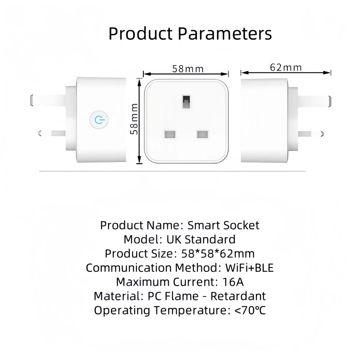 Compact Dimensions: 58×58×62mm (W×D×H). Ultra – small footprint fits neatly in UK sockets, won’t block adjacent outlets. Keep your power strip or wall socket tidy and usable.