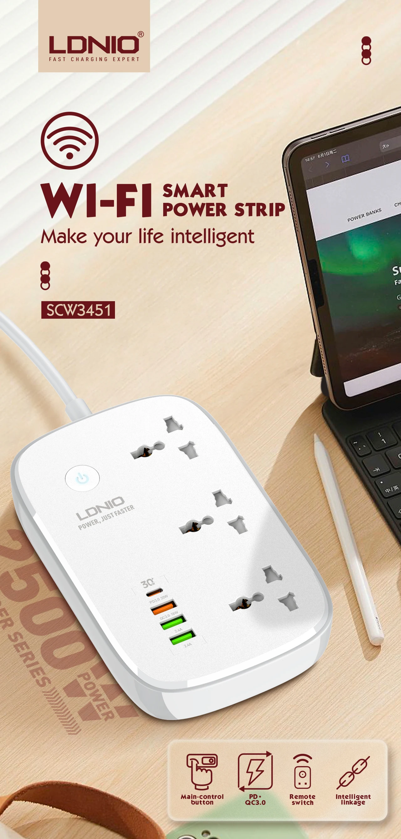 Tuya WiFi Smart Universal Power Strip EU UK US Surge Protector Extenstion Socket Multi Plug Fast Charge 4USB TypeC  Alexa Google