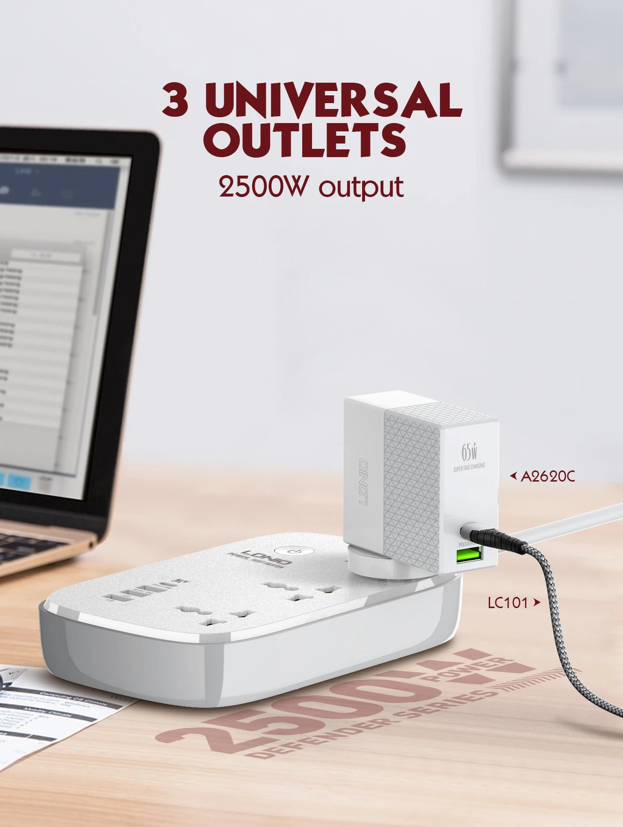 Tuya WiFi Smart Power Strip Universal Extension Socket with Surge Protector UK/US Plug 4USB TypeC Fast Charge Compatible with Al