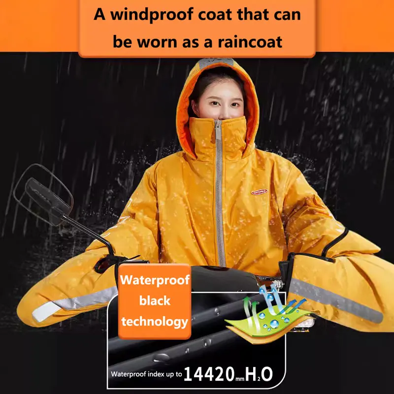 ③ Full surround high neck scarf+built-in velvet hat+pinhole free three proof fabric+dual pocket