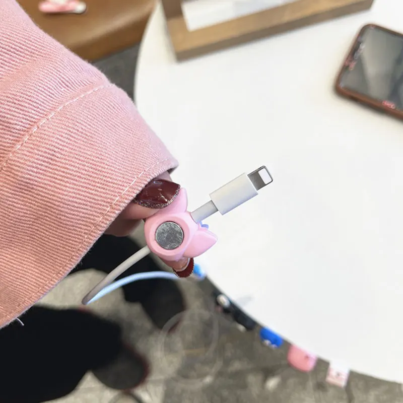 It grasps cables of varying sizes and keeps them handy (and off the floor) after you unplug them.