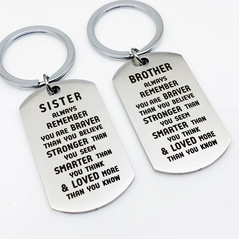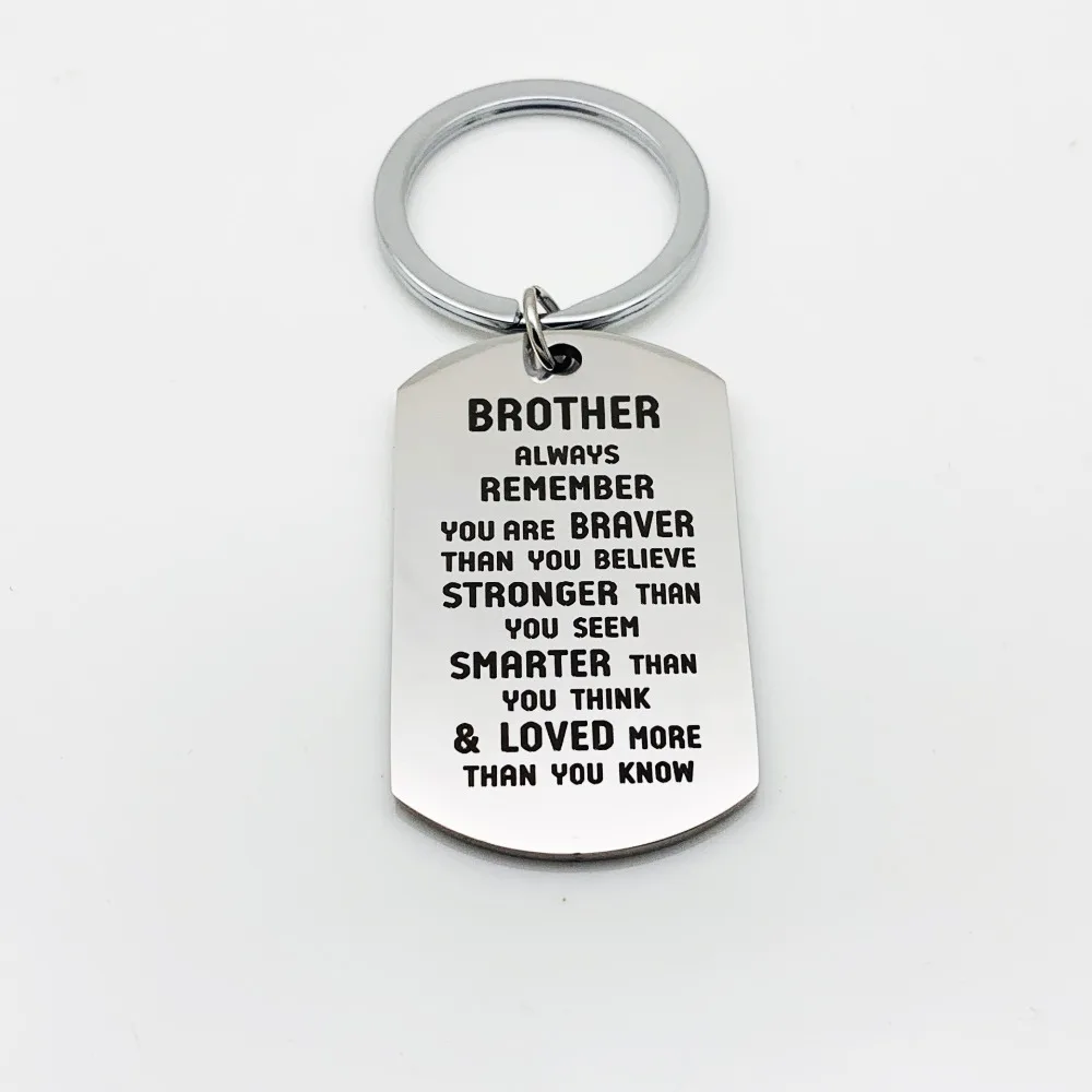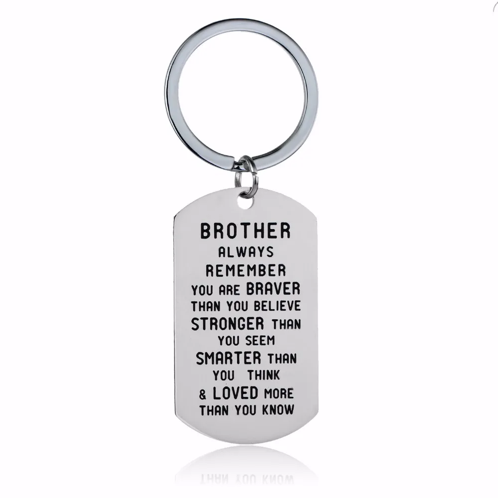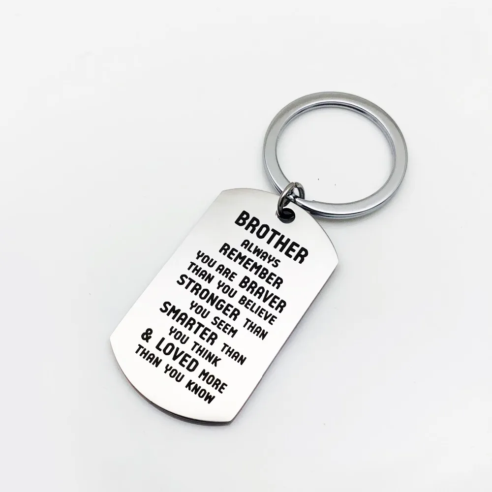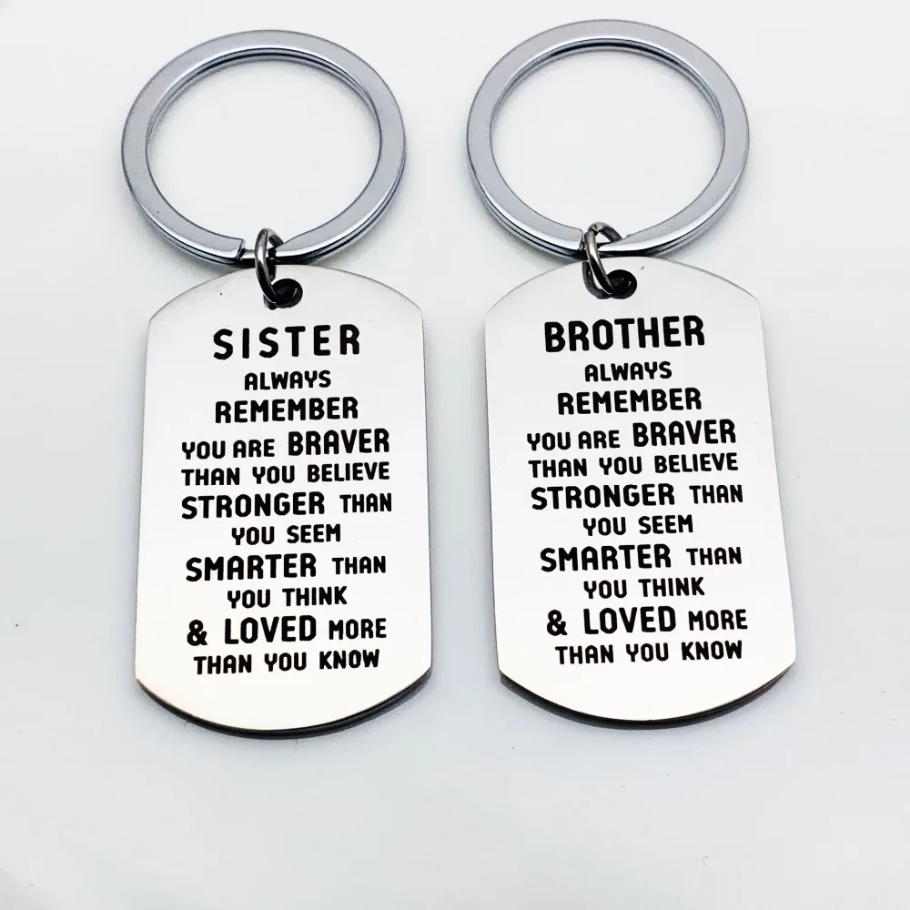 Name:ZRM Jewelry Stainless Steel Key Chain Brother/Sister Remember You Are Brave Keychain Bag Car Key Ring Party Gifts