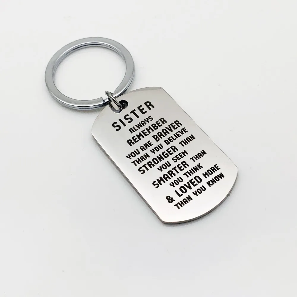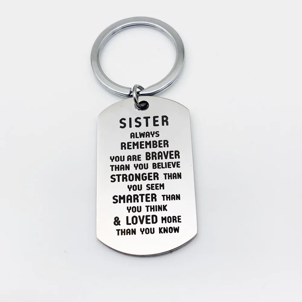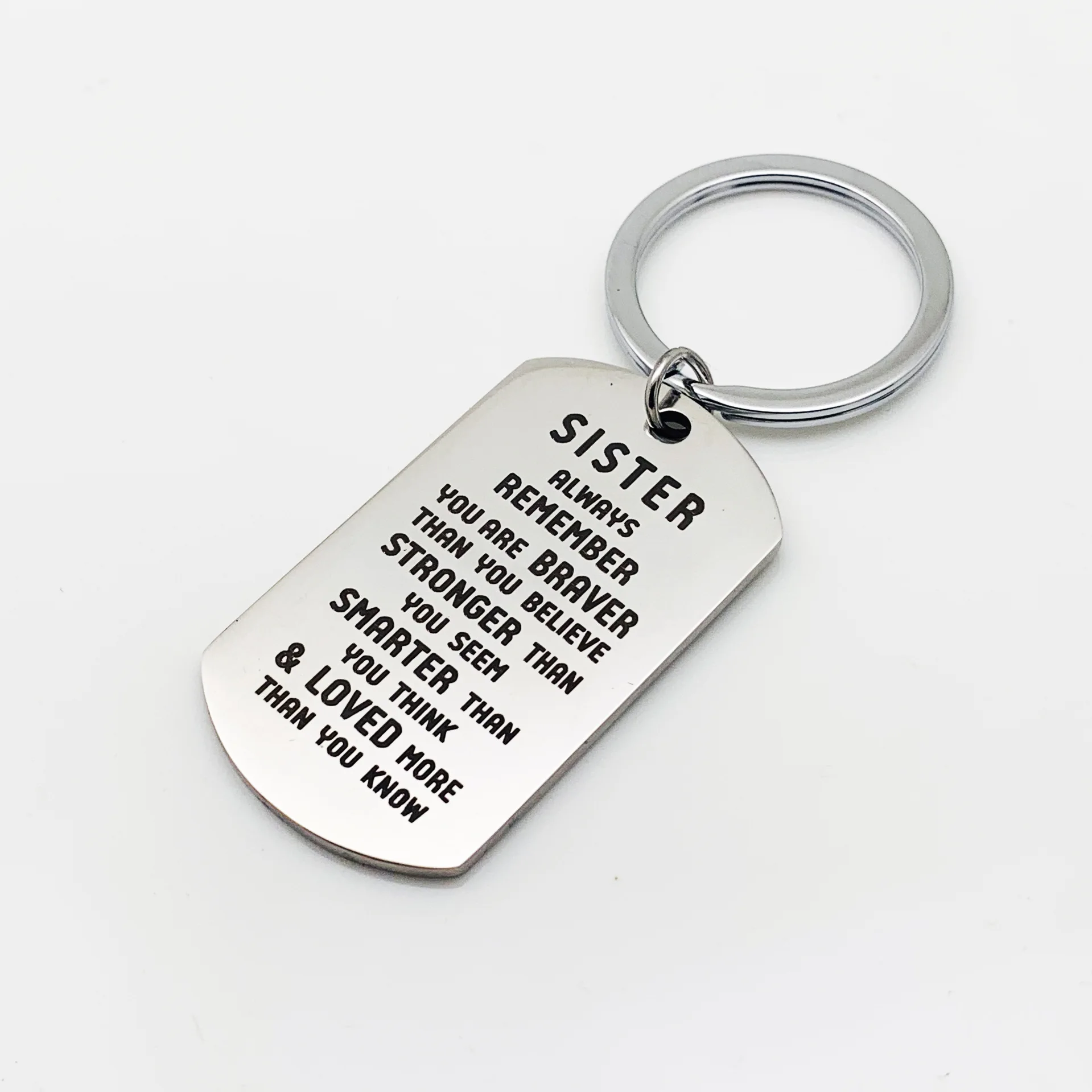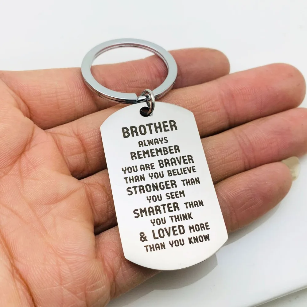 Name:ZRM Jewelry Stainless Steel Key Chain Brother/Sister Remember You Are Brave Keychain Bag Car Key Ring Party Gifts